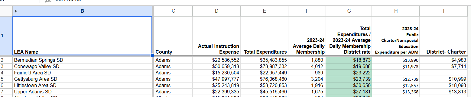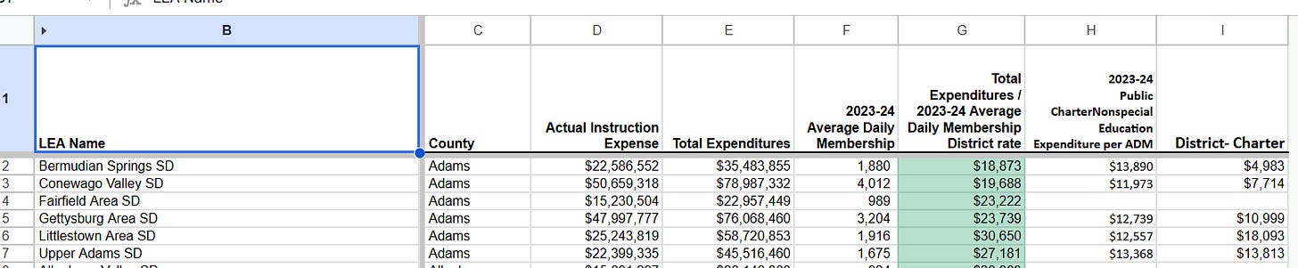 When you divide Total Expenditures by ADM, you get the real per-student cost inside a district.